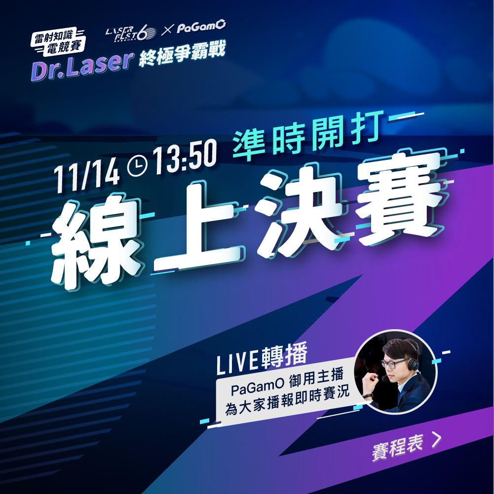 發布者 BoniO at 13 11 月, 2020 【雷射電競賽線上決賽明日登場】 分享 雷射知識竟然也可以打電競??? 在明日登場的Dr.Laser終極爭霸賽, 就要讓你大吃一驚、大開眼界 #雷射電競選手看過來 快來看看明天自己的賽程表, 小編小叮嚀送給大家囉 比賽要準時,五分鐘前登入賽場 仔細看簡章,比賽規則要記好 道具要善用,可以更快取得勝利 想複習雷射,快到自選章節練練 #觀看直播親友團照過來 想要為你的同學們加油打氣嗎? 記得準時收看雷射電競賽線上直播 有PaGamO御用主播為你講解賽事唷! 直播日期:2020/11/14 直播時間:下午13:50-下午3:05 當天線上還會有PaGamO御用賽評伯翰, 一起在線上跟大家進行精闢的賽事解說唷~ 你們是不是跟我一樣期待,週六的直播了呢~ 明天下午1點50,準時收看以下頻道吧~ PaGamO Taiwan粉專直播:https://bit.ly/3kmr3CQ PaGamO Taiwan Youtube頻道:https://bit.ly/2Iy3N7E #全台唯一雷射電競賽 #DrLaser終極爭霸賽 #線上直播明天登場 #看看大獎SWITCH獎落誰家 #快來替自己的好朋友們加油打氣 #PaGamO電競 #孩子成長學習的最佳夥伴 分享 相關貼文19 3 月, 2026解任務=打電競? PaGamO教育電競教練認證 火熱上線!閱讀更多19 8 月, 20252025「腎鬥士永恆保衛戰」第二屆盛大登場 推動創新遊戲化學習平台 落實腎病防治教育向下扎根閱讀更多第四屆慈濟環保防災勇士 PK賽國際盃全球總決賽2 5 月, 2025【第四屆環保防災勇士PK賽選手專訪】從菜鳥到國際賽,PaGamO電競帶來的成長與改變閱讀更多 發佈留言 取消回覆發佈留言必須填寫的電子郵件地址不會公開。 必填欄位標示為 *留言 * 顯示名稱 * 電子郵件地址 * 個人網站網址 在瀏覽器中儲存顯示名稱、電子郵件地址及個人網站網址,以供下次發佈留言時使用。